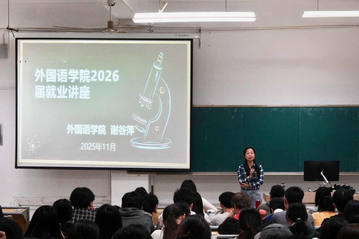 为做好2026届毕业生就业指导服务工作,帮助毕业生认清就业形势、把握就业机会,11月7日下午,学院在惟义楼W7101教室召开2026届毕业生动员大会暨就业育人第一课。学院党委书记谢谷萍亲自讲授就业育人第一课,毕业班辅导员及全体商务英语、朝鲜语专业毕业生300余人参加。会议由学院党委副书记曹烨主持。