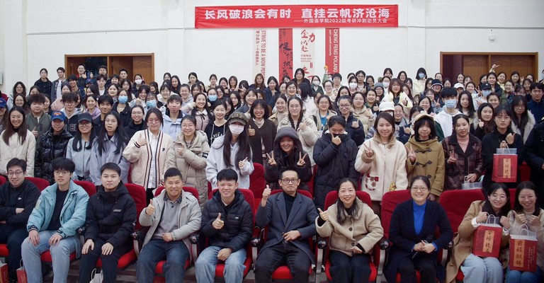 12月11日,外国语学院举办2022级考研冲刺动员大会。学院院长谢枝龙、党委书记谢谷萍、2022级辅导员及260余名考研学子参会,会议由党委副书记曹烨主持。
