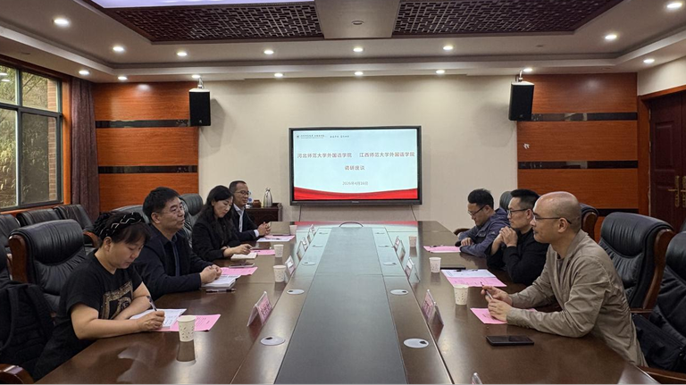 王洪庆感谢学院的热情接待,介绍了河北师范大学外国语学院的基本情况以及发展近况与未来规划。