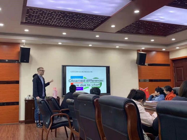 11月26日,浙江温州肯恩大学Adam John Privitera博士应邀为我院师生作题为“Mixed-effects models in the investigation of bilingual effects on executive functions”的学术讲座。讲座由外国语学院副院长谢枝龙教授主持,我校外院师生共同聆听了本次讲座。