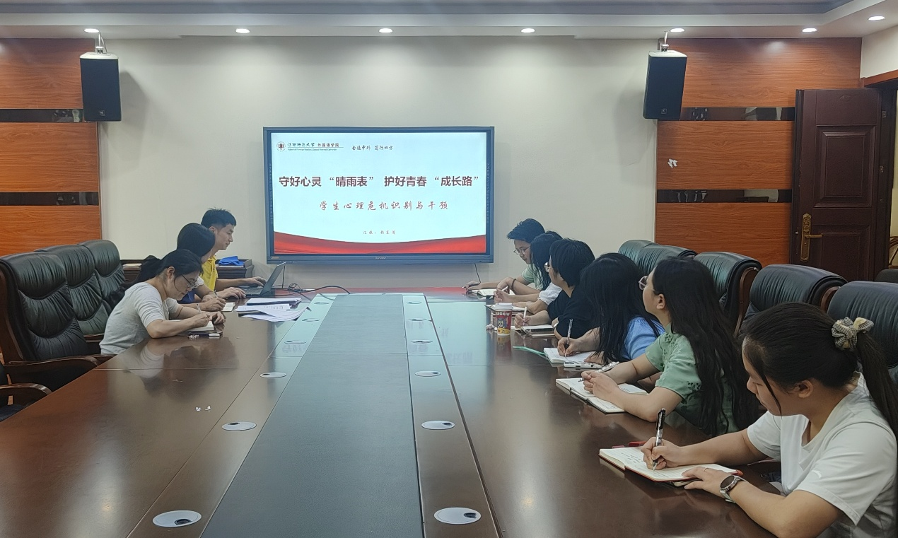 会上,赖东清首先就心理教育中心近期举办的“辅导员心理危机干预胜任力提升培训”进行分享汇报。结合自身在学生心理健康工作一线的实践经验与心得体会,赖东清从四个方面系统梳理并详细解读了心理危机干预的关键环节:一是深入阐释心理危机的内涵与表现特征,帮助辅导员准确理解危机本质;二是重点讲解学生心理危机早期识别的具体方法与信号捕捉,提升预警敏感度;三是系统介绍心理危机的预防策略与干预技巧,涵盖沟通方法、支持体系建设及应急处置流程;四是对后期跟踪回访机制及学习相关规定进行解读,明确工作边界与责任义务。在分享过程中,他既剖析了多个真实鲜活的典型案例,又提炼出一系列实用有效的工作方法,内容贴近实际、语言生动具体,使培训内容兼具理论高度与实践深度,为学院辅导员队伍进一步提升心理危机识别与干预能力提供了有力支持。