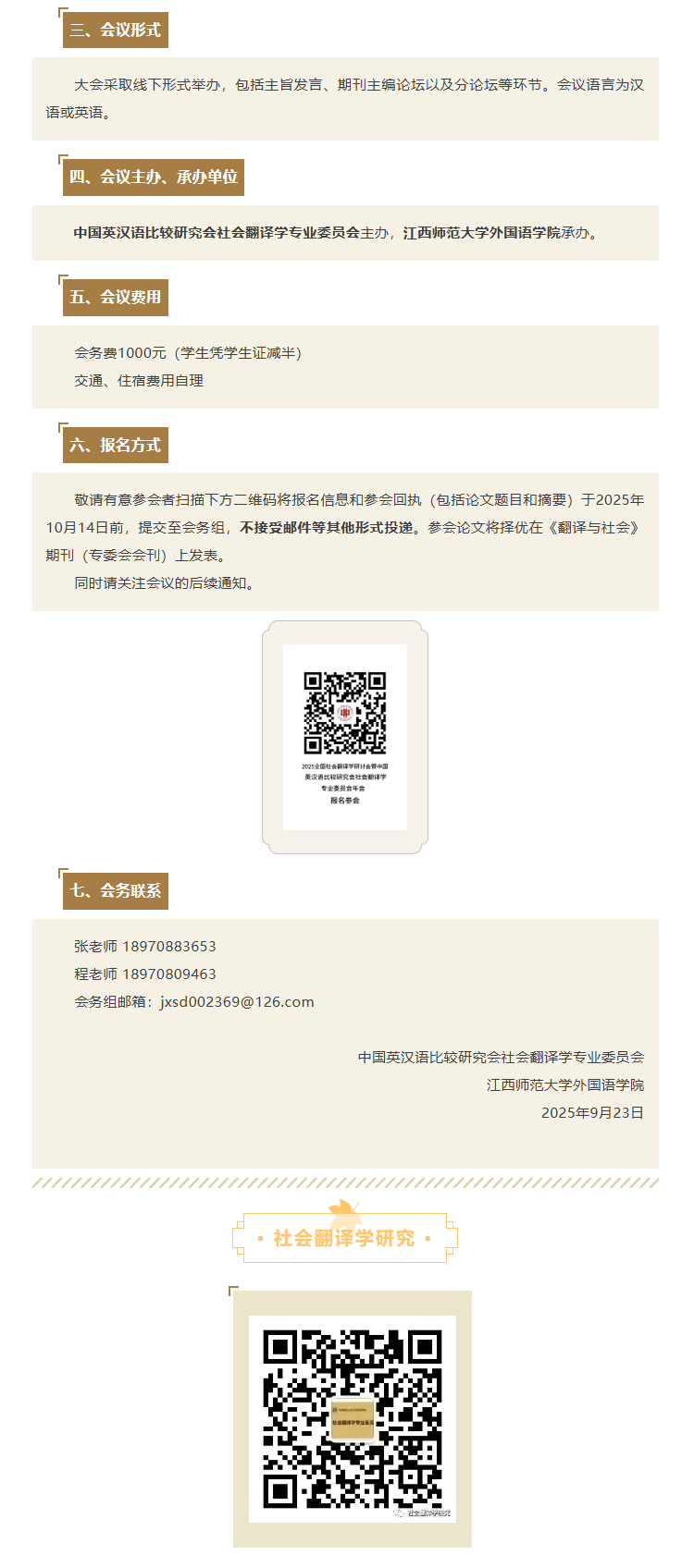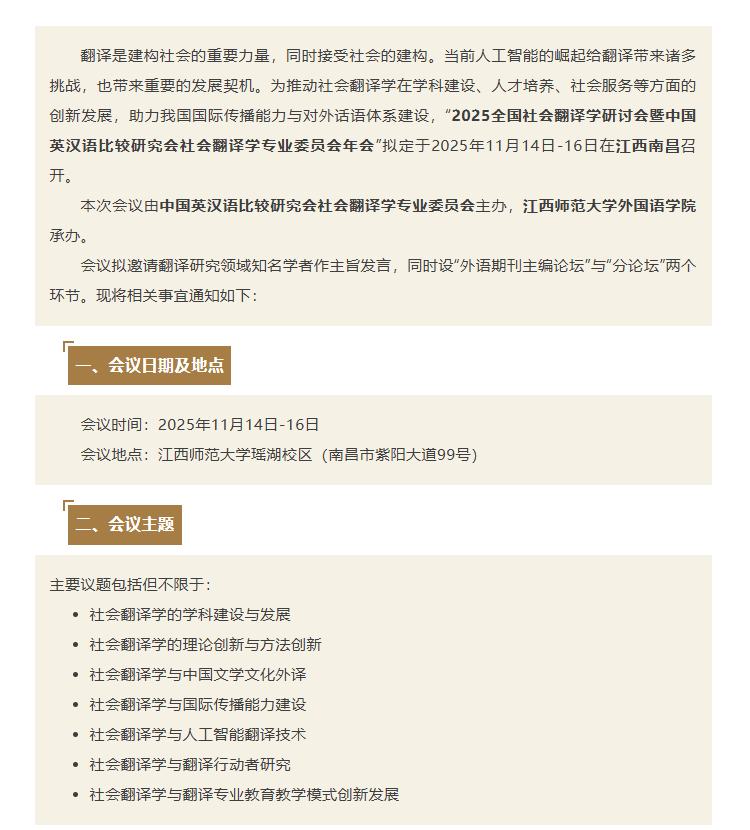 2025全国社会翻译学研讨会暨中国英汉语比较研究会社会翻译学专业委员会年会(二号通知)