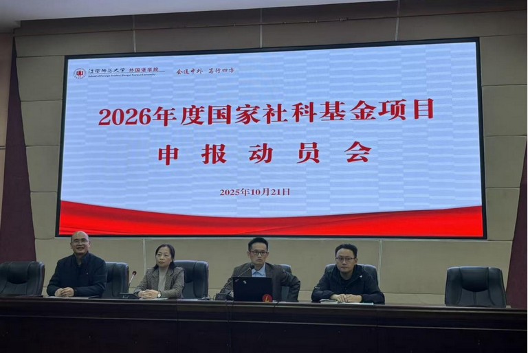 10月21日下午,外国语学院在学院三楼报告厅召开2026年度国家社科基金项目申报动员会。全体教师参加。