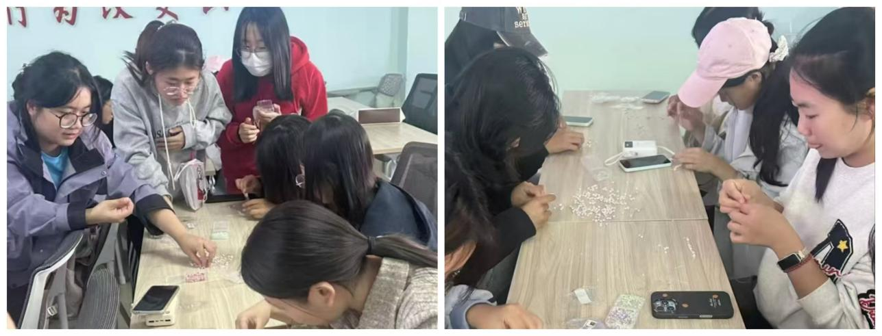 10月28日,学院在大学生活动中心309举办第一期“青蓝心助力”手工训练营活动。本次活动以“指尖经纬,字母生花——字母手串DIY”为主题,由学院心理素质拓展协会精心策划,全校心理委员参加。
