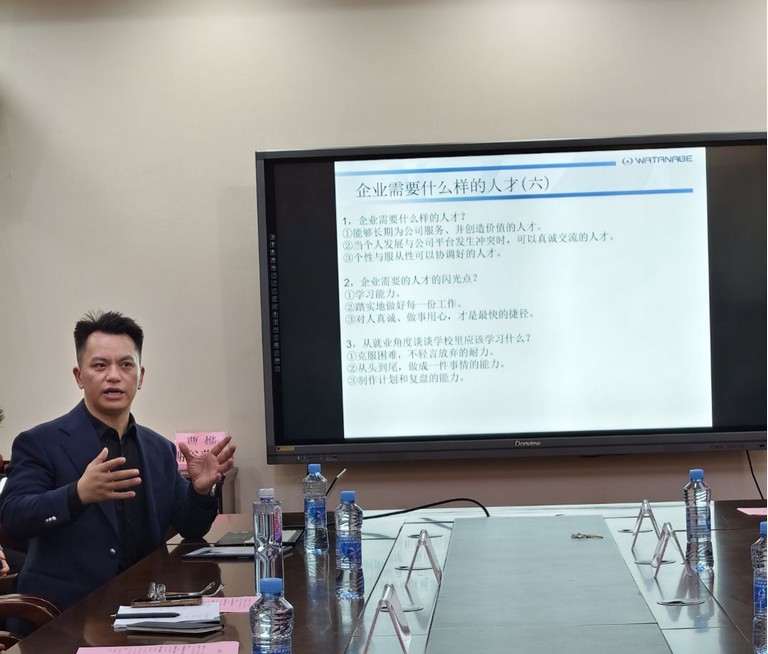 作为深耕食品机械行业多年的资深从业者,王平校友结合渡边集团的发展历程与自身工作经历,从企业视角与就业实操两方面展开分享。他详细介绍了渡边集团作为日本独资跨国家族企业的87年历史积淀、行业领先地位,以及中国子公司的发展规模、核心产品优势与全国服务网络,让学子们直观了解优质日企的运营模式与行业前景。针对日企就业热点,他重点解析了国内日企的分布特点、企业性质与岗位需求,围绕城市选择、自我介绍准备、简历投递技巧、面试着装礼仪等核心环节,提供了“多投专业猎头、双语打磨自我介绍、提前调研目标企业”等可落地的实操建议。同时,他结合企业人才选拔标准,强调“长期服务价值、真诚沟通意识、学习能力与踏实作风”的重要性,寄语学弟学妹秉持“自信有礼貌、用心多准备”的原则,在职业道路上稳步前行。