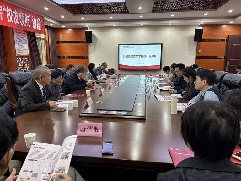 10月31日,外国语学院举办校庆85周年“校友领航”活动(四)——外国语言文学学科建设咨询会。会议特邀81届校友、上海对外经贸大学原副校长叶兴国,87届校友、广东外语外贸大学副校长刘建达等校友出席。学院领导班子及教师代表与会,会议由副院长张汨主持。