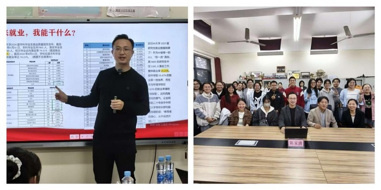 陈家清以自身职业发展为蓝本,围绕“从日语专业学子到教育领域专家、资深自媒体博主”的跨领域转型历程,向学弟学妹系统拆解了运用自媒体思维提升外语专业核心竞争力的实用方法论。他指出,新时代外语学习者需打破“仅聚焦翻译、教学”的传统职业认知,主动契合互联网时代发展浪潮,借助新媒体平台实现语言优势与数字技能的深度绑定,进而开拓多元化职业赛道。陈家清详细回顾了从一线教师到教育管理者、再到赴日留学后归国创业的完整历程,坦诚剖析了创业途中遭遇的挫折与挑战。他勉励同学们,面对行业“内卷”不必焦虑退缩,持续深耕与不懈努力终将铺就成长坦途;求职过程中,既要端正态度、脚踏实地,更要敢于自信展现专业所长,让能力成为核心竞争力。最后,他以“经历即财富”“少抱怨多调适”等箴言结束分享,激励学子怀揣梦想勇敢前行,摒弃不劳而获的浮躁心态,多关注自身优势而非纠结短板,始终保持自信自强的精神风貌,在人生道路上稳步前行。