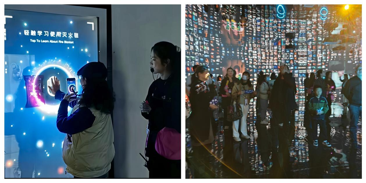 活动现场,党员们沉浸式参与各类安全实践体验,在学思践悟中强化安全担当:在9米巨幕的“安全之柱”前,大家踊跃参与“生死100秒”安全知识答题挑战,在趣味互动中夯实安全理论基础;在“生存道具库”,通过全息投影技术系统学习灭火器、灭火毯、逃生绳等应急工具的使用方法,朗朗上口的四字口诀让实用技能入脑入心;“人间警示录”展区呈现的上百个真实事故案例,让党员们深受警醒,进一步强化了敬畏生命、坚守安全底线的意识;在“危机共生仓”,1:1还原的家庭火灾逃生场景,让大家在实景模拟中找准逃生路线,切实提升应急处置能力。