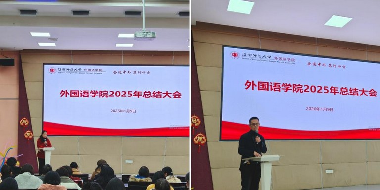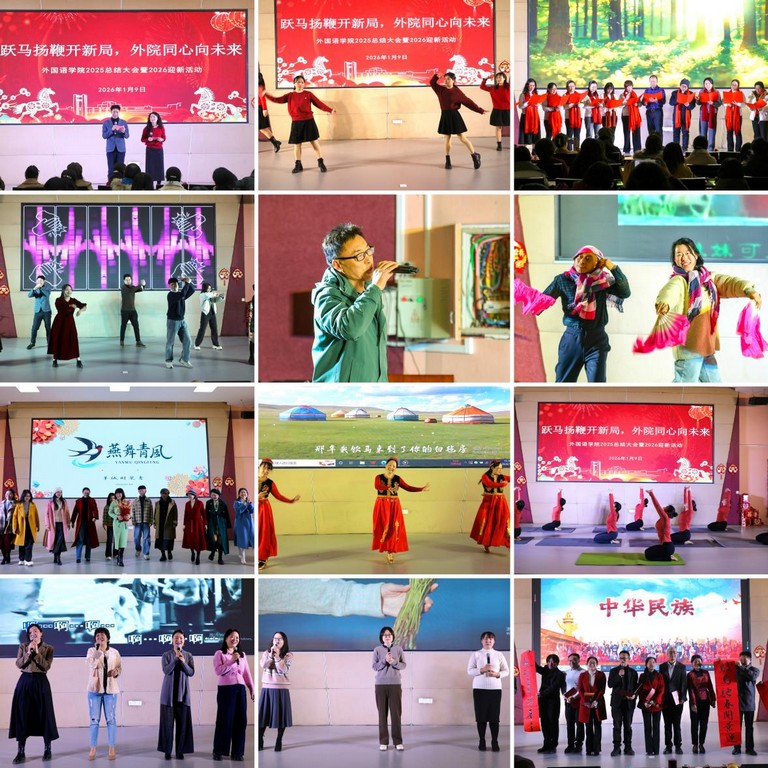 1月9日,外国语学院成功举办以“跃马扬鞭开新局 外院同心向未来”为主题的2025总结大会暨2026教师迎新活动。全体教职工齐聚一堂回顾过往耕耘成果,共话新年发展蓝图。